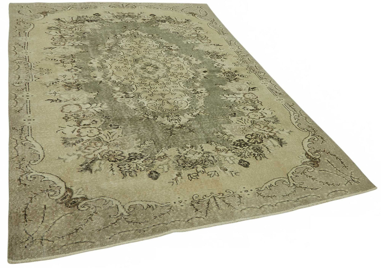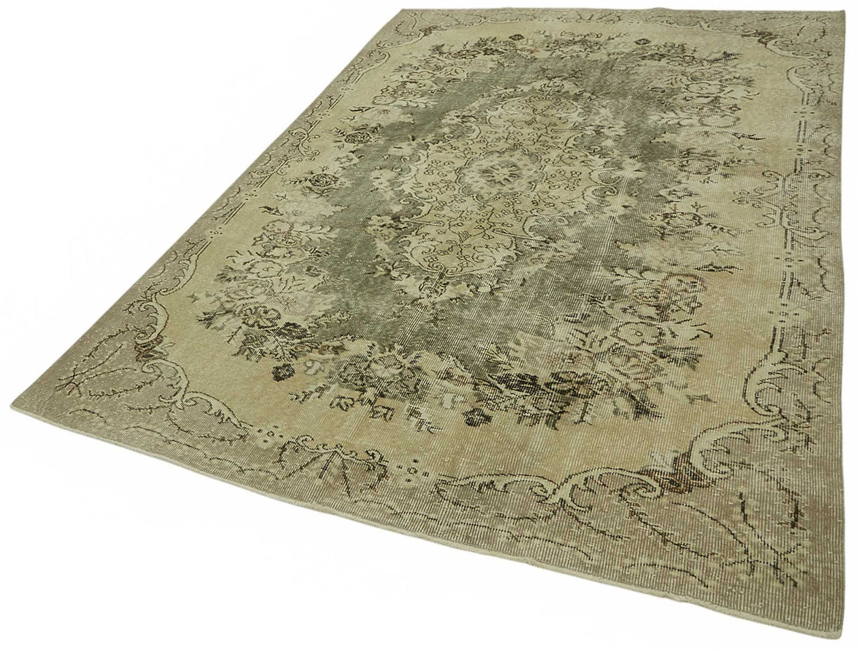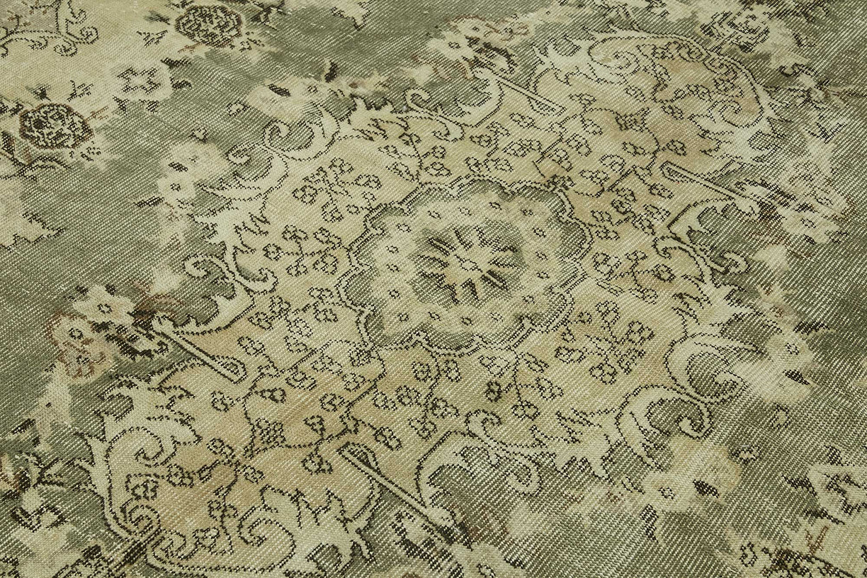 This stunning piece is part of our curated collection of vintage rugs, crafted from authentic hand-knotted Turkish carpets that have aged gracefully over 40 to 60 years. Originally made from wool on cotton, each rug is carefully handwoven and selected for its enduring design and construction. The aging process, followed by delicate cleaning and a specialized distressing technique, brings new life to these traditional oriental pieces.Using expert fading and color-neutralizing methods, the rug’s original vibrant tones are softened into subtle, natural hues—turning once-bold traditional motifs into charmingly faded patterns that carry both history and modern appeal. The result is a low pile, textural surface that feels light and effortless in any setting.These rugs are a favorite in the world of interior design, especially in spaces that embrace bohemian, Scandinavian, or contemporary decor. Their timeless look fits beautifully into living rooms, bedrooms, or dining areas, offering a balanced fusion of nostalgia and modern refinement.