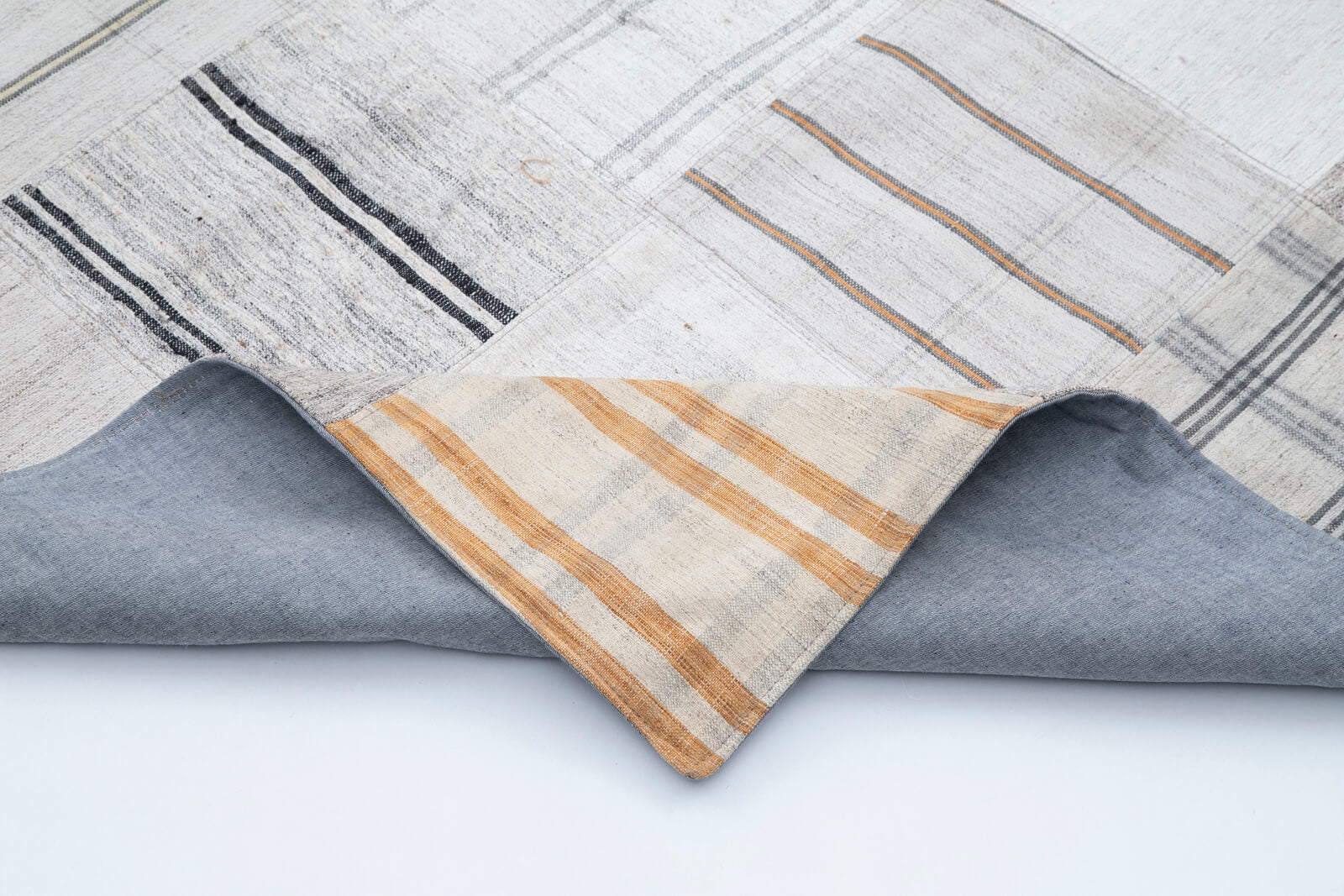 Each patchwork piece is backed with buckram and cotton lining to reinforce its structure, ensuring longevity without compromising its delicacy. These kilims offer a rare opportunity to own a piece of handmade heritage that feels at once authentic, artistic, and versatile.