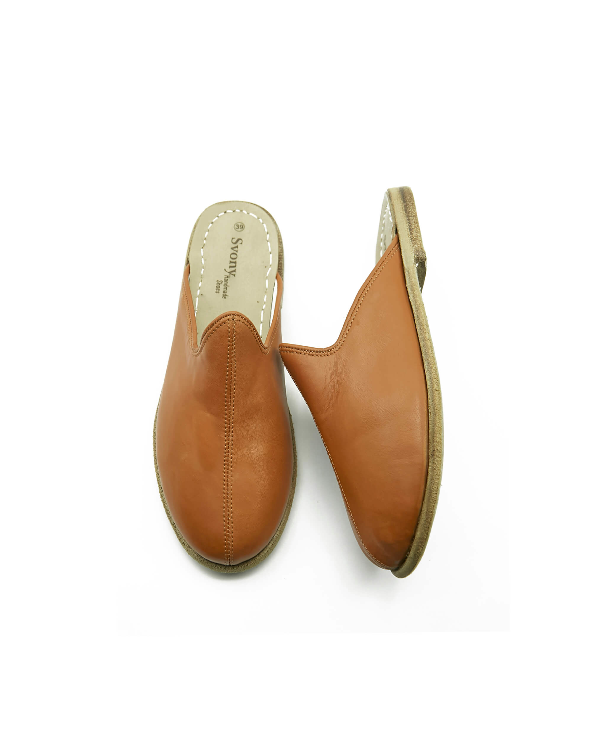 Figuero Women’s Tan Color Leather Handmade Slippers