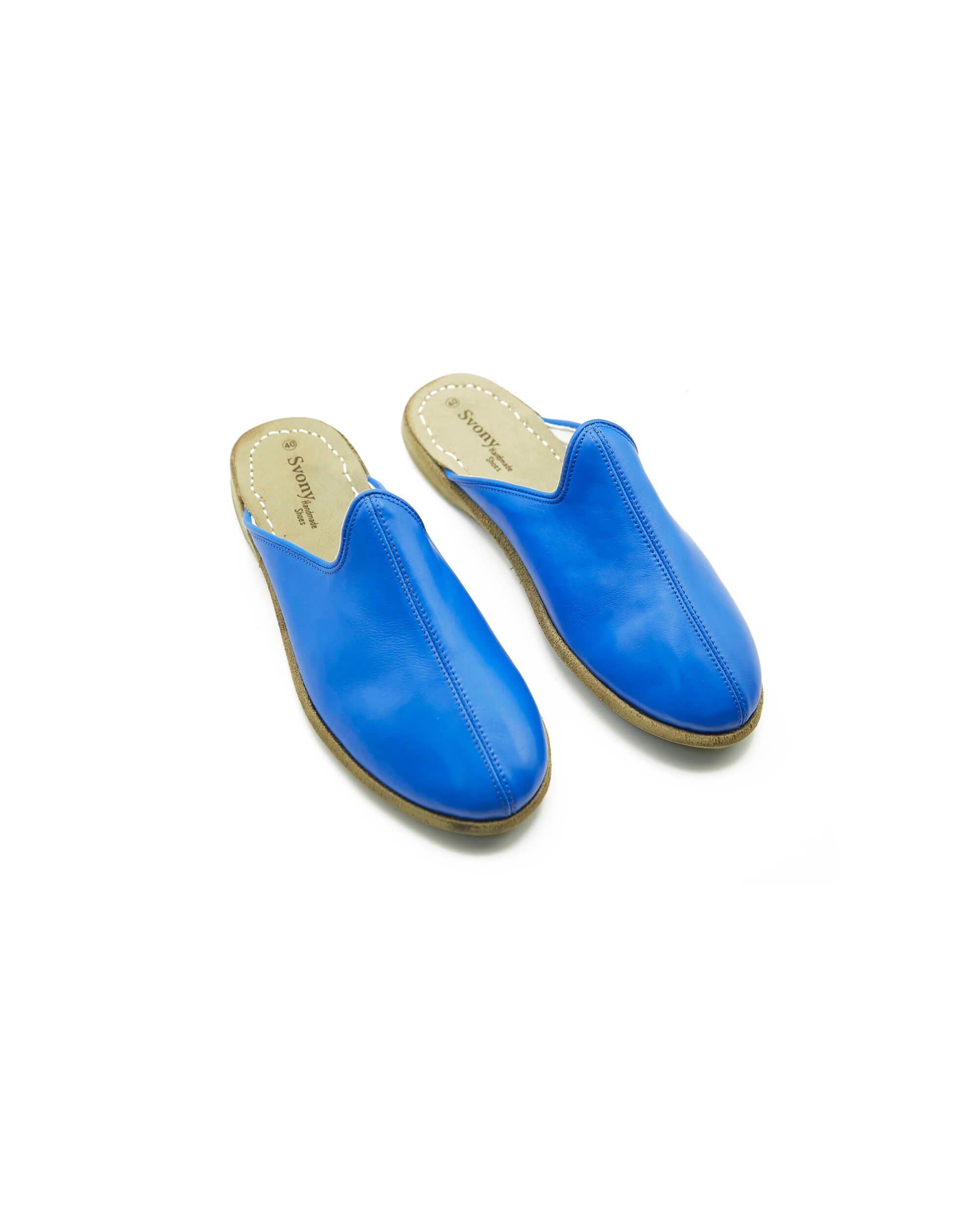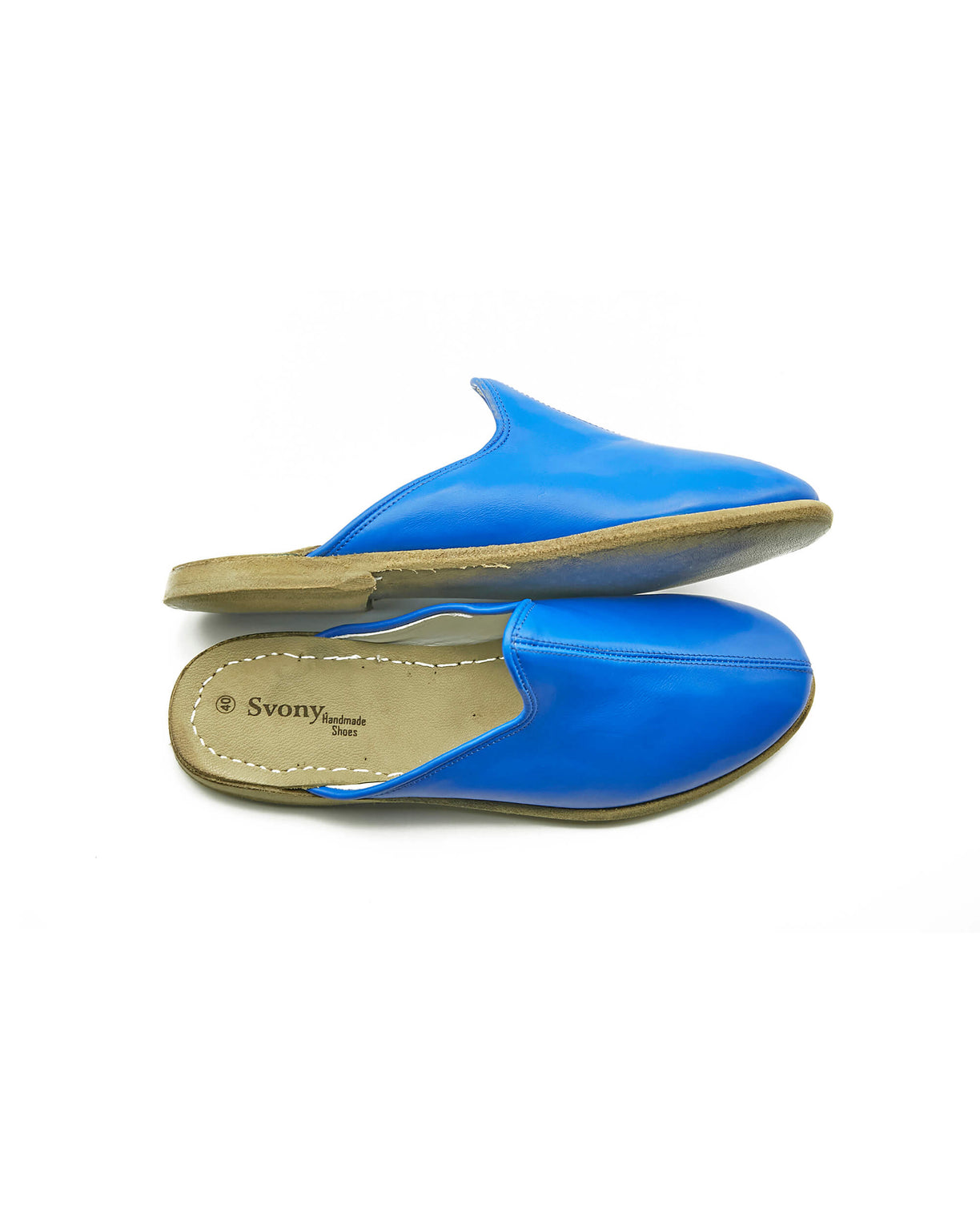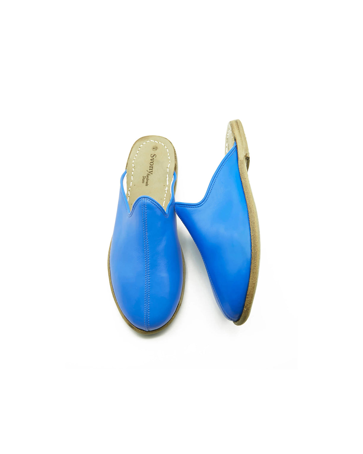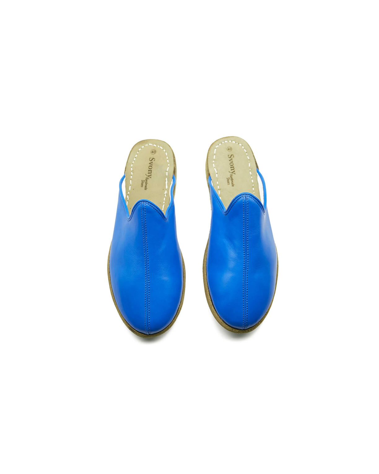 Rowland Luxurious Handmade Blue Leather Slippers for Women