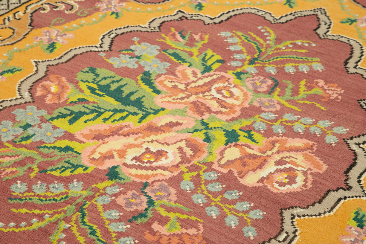 Authentic Traditional Moldovan Flat-Weaves Kilim, woven by hand in the 70s, showcasing a beautiful floral motif and timeless design. In superb condition, it’s an ideal addition to both modern and eclectic decor. To protect and preserve, consider using a rug pad.