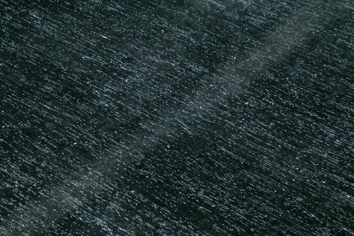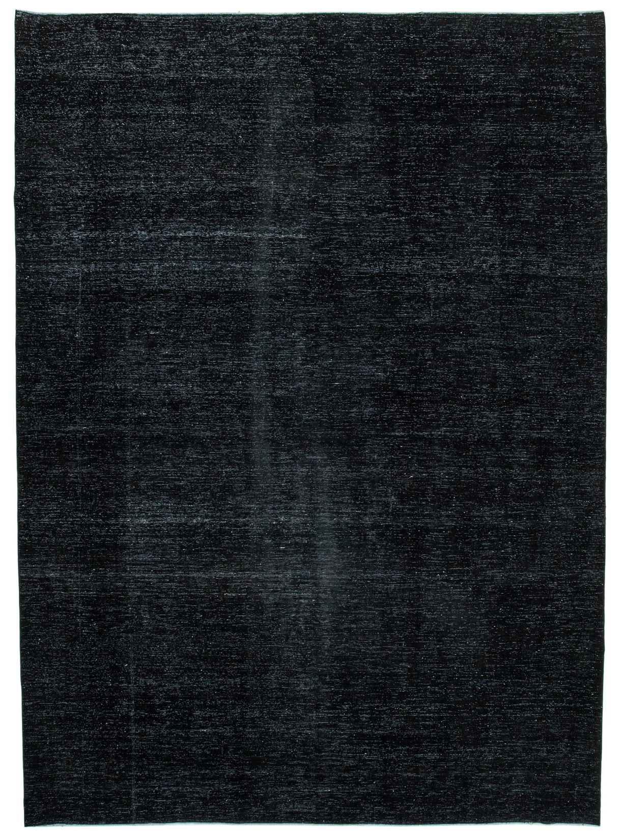 This black over-dyed rug offers a contemporary look with abstract appeal, crafted from a hand-knotted vintage Oriental rug from the 1960s. it measures 9' 7'' x 13' 4''. The rug undergoes a unique process to lower the pile, desaturate the color, and achieve the perfect hue. This transformation bridges generations of artisanal skill, making it a unique statement piece for modern décor. All our vintage rugs are professionally cleaned before being added to our collection.