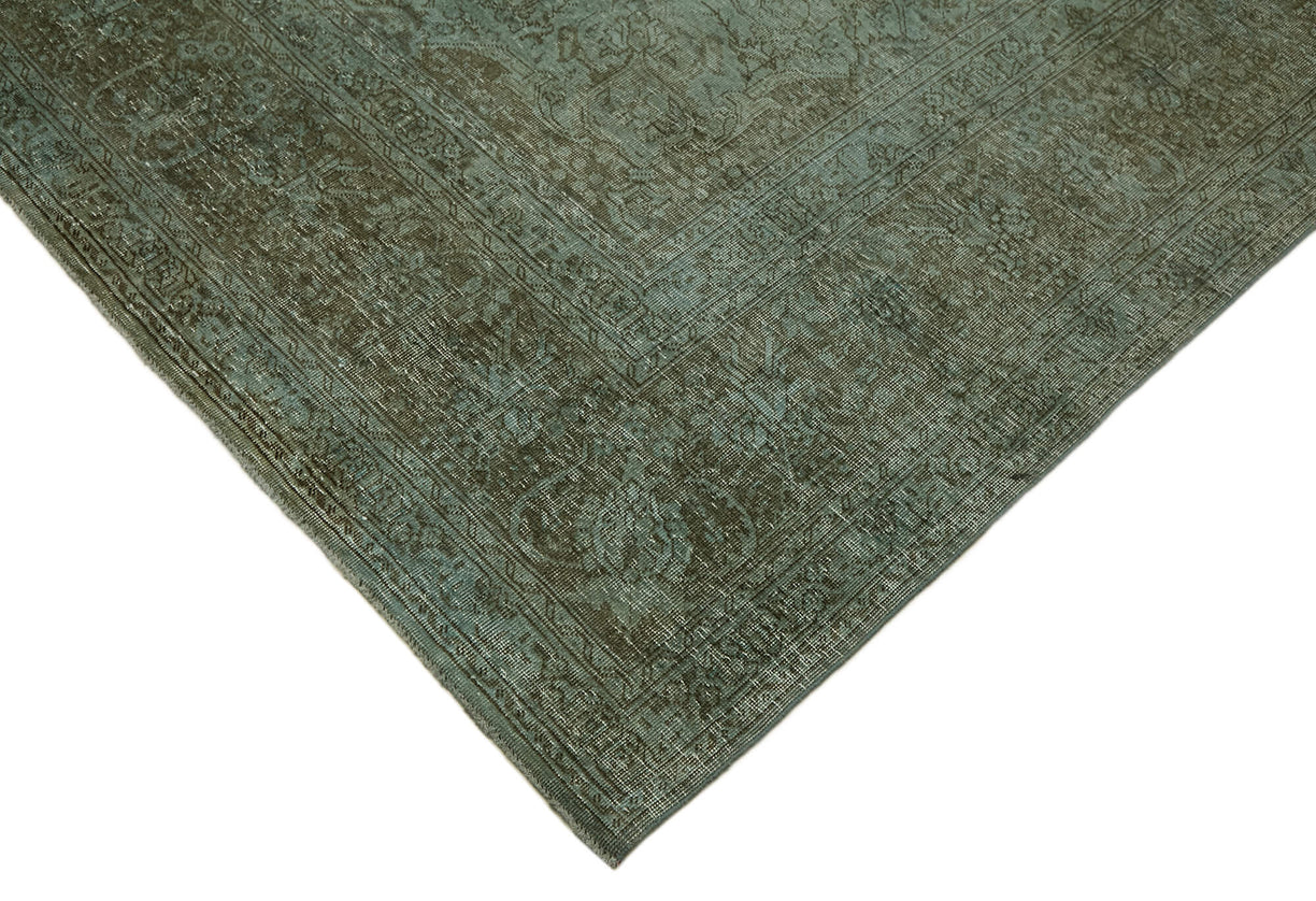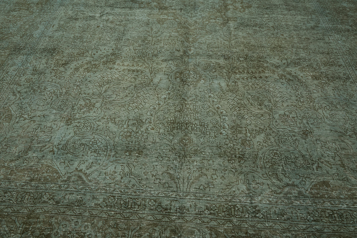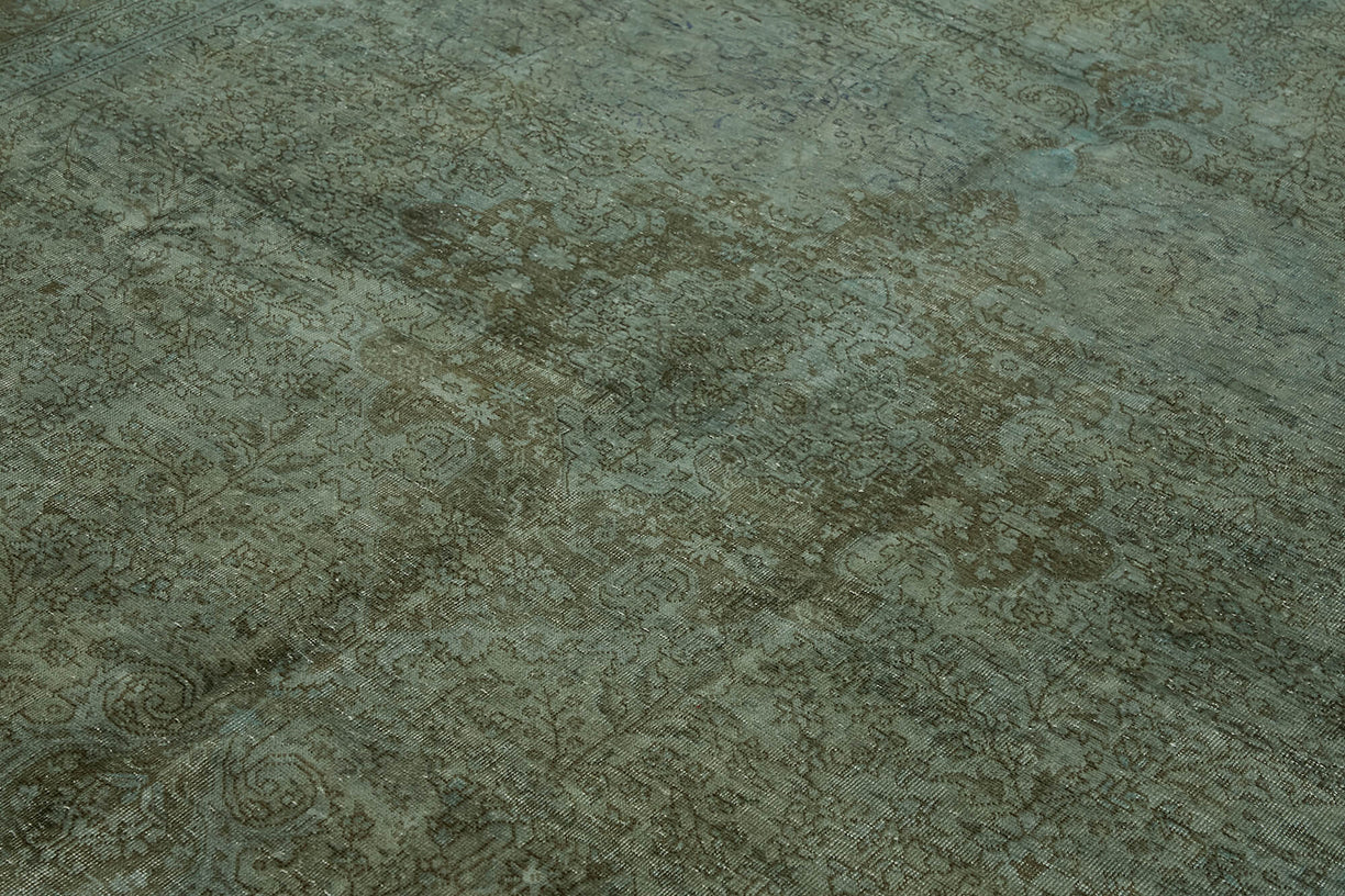 This blue over-dyed rug offers a contemporary look with abstract appeal, crafted from a hand-knotted vintage Oriental rug from the 1960s. it measures 8' 1'' x 11' 5''. The rug undergoes a unique process to lower the pile, desaturate the color, and achieve the perfect hue. This transformation bridges generations of artisanal skill, making it a unique statement piece for modern décor. All our vintage rugs are professionally cleaned before being added to our collection.