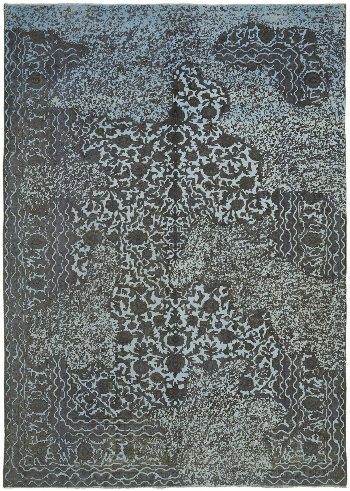 This purple over-dyed rug offers a contemporary look with abstract appeal, crafted from a hand-knotted vintage Oriental rug from the 1960s. it measures 9' 7'' x 13' 0''. The rug undergoes a unique process to lower the pile, desaturate the color, and achieve the perfect hue. This transformation bridges generations of artisanal skill, making it a unique statement piece for modern décor. All our vintage rugs are professionally cleaned before being added to our collection.
