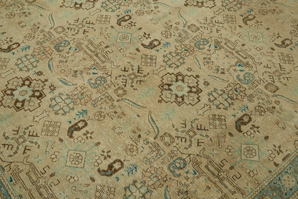 This vintage Persian rug exemplifies the beauty of age, skill, and material excellence. Woven entirely by hand in the 1970s or 1980s, its wool on cotton structure showcases fine craftsmanship and regional design traditions that continue to inspire rug makers today. After decades of natural aging, we carefully trim the pile to enhance its visual appeal, revealing a beautifully distressed finish that feels both rustic and elegant. The resulting rug balances old world charm with a subtle modern edge, making it an ideal foundation for interiors that blend contemporary furniture with curated vintage elements. A testament to sustainability, quality, and taste, this rug is as much about heritage as it is about timeless decor.