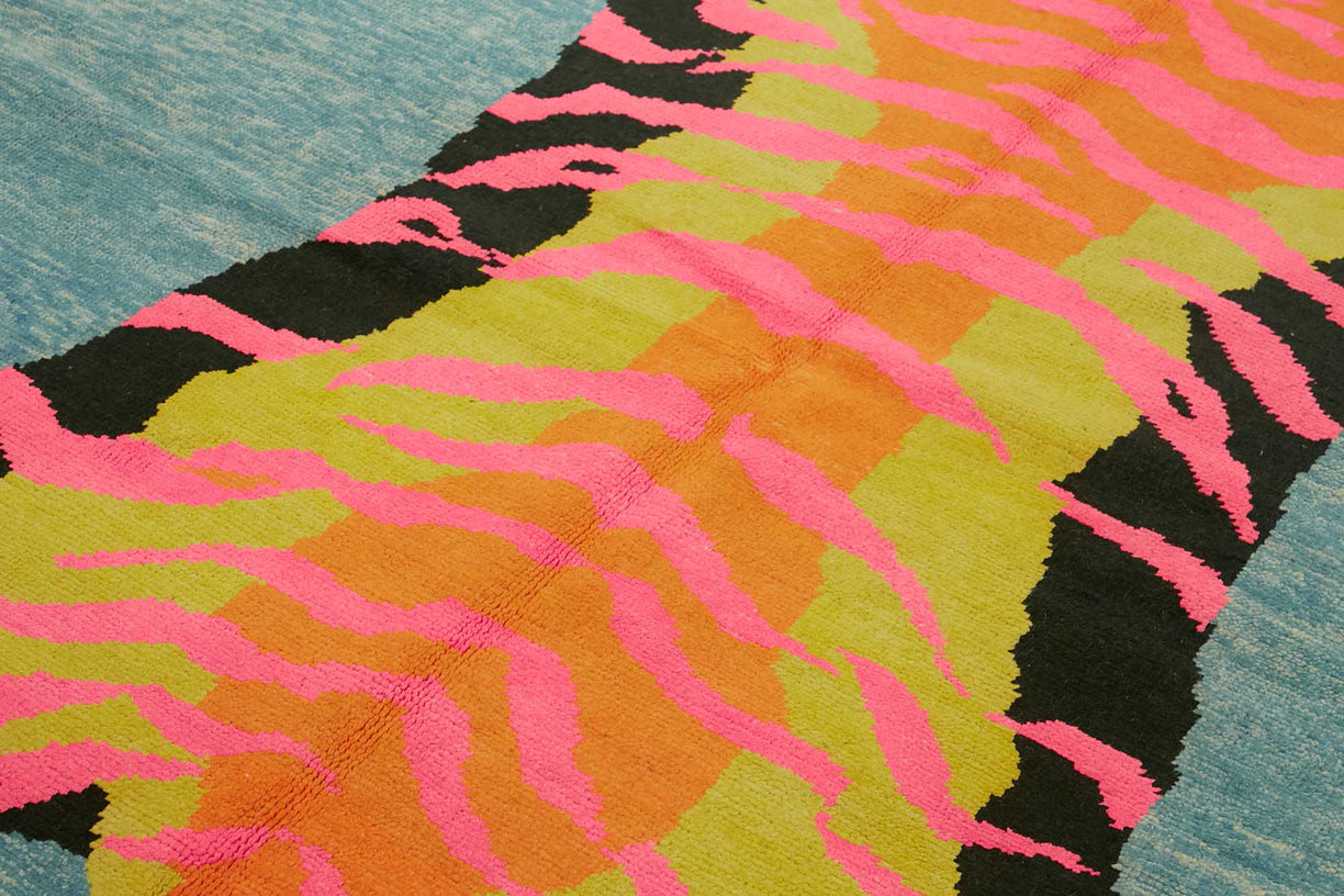Handcrafted with exceptional care in Central Anatolia, Turkey, our tiger rugs are made from premium, high-quality wool, ensuring both durability and comfort. Each rug is meticulously handwoven by skilled artisans, celebrating the timeless art of rug-making passed down through generations. The bold tiger motif, paired with vibrant colors, brings a lively and modern twist to traditional design. These rugs are more than just floor coverings; they are statement pieces that infuse any space with character, energy, and artistry. Perfect for those seeking a unique, eye-catching addition to their decor.