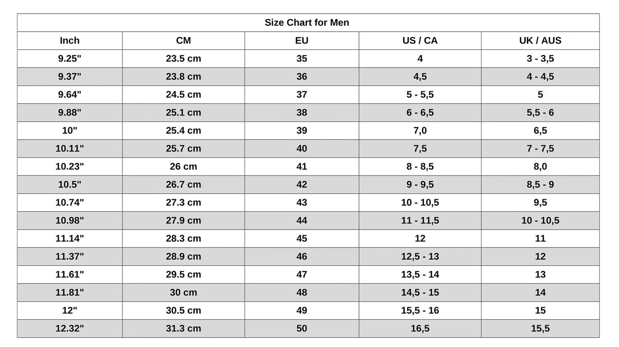You can order the size of the sneakers you normally wear. At the same time, you can check our chart according to your foot size. If you want help, you can contact us. Ideally, initial fit should be tight.Yemenis are made entirely from natural leather and they will stretch and take the shape of your feet in a few weeks.
