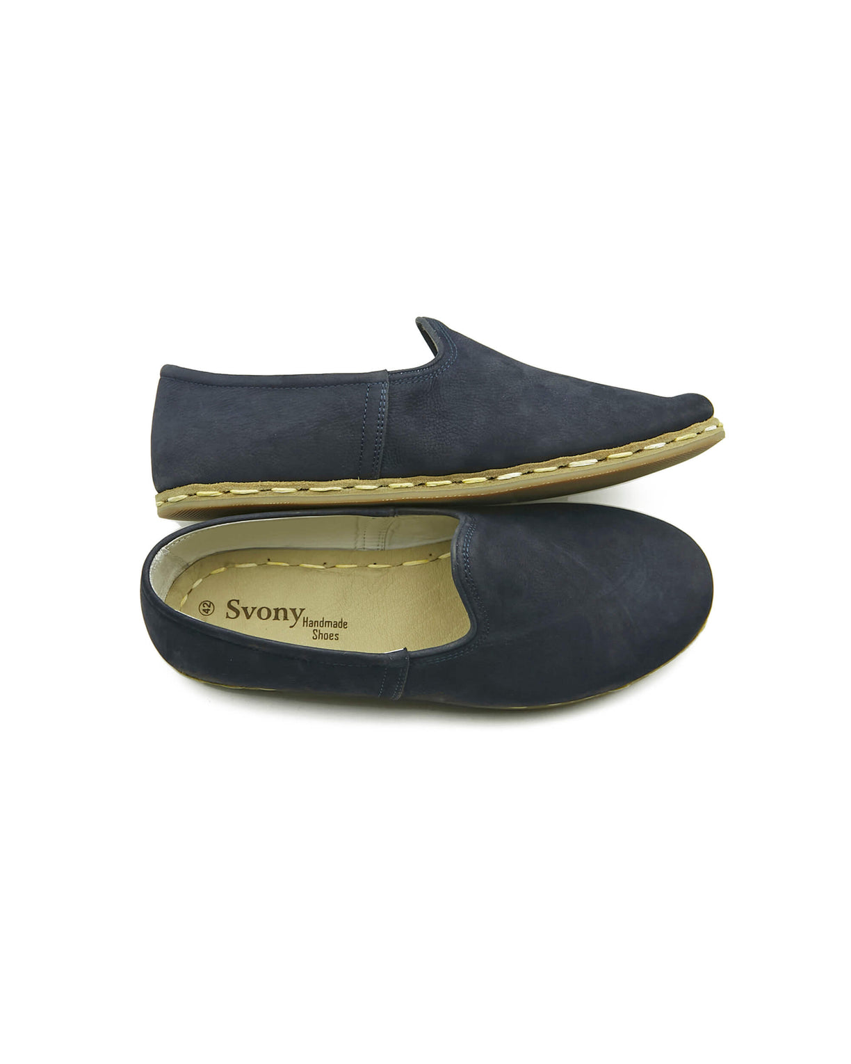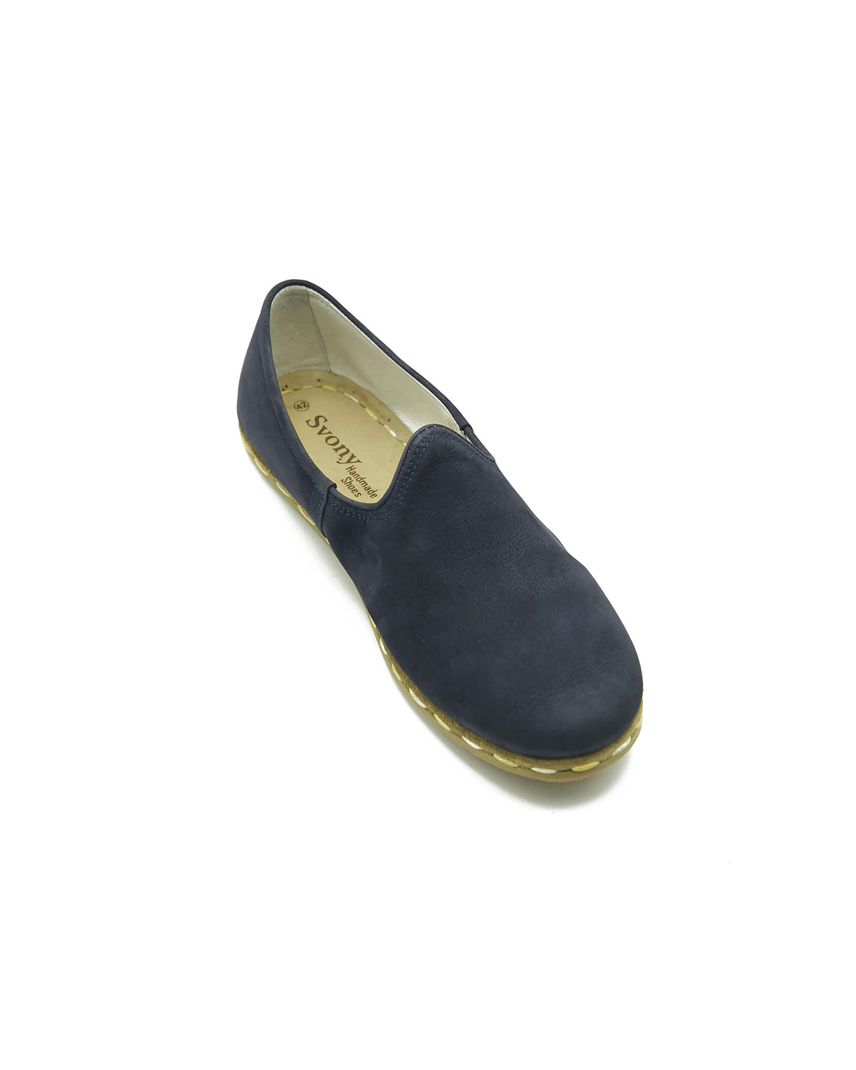 Raymond Chic and Comfy Women’s Handmade Blue Leather Slip-On Shoes